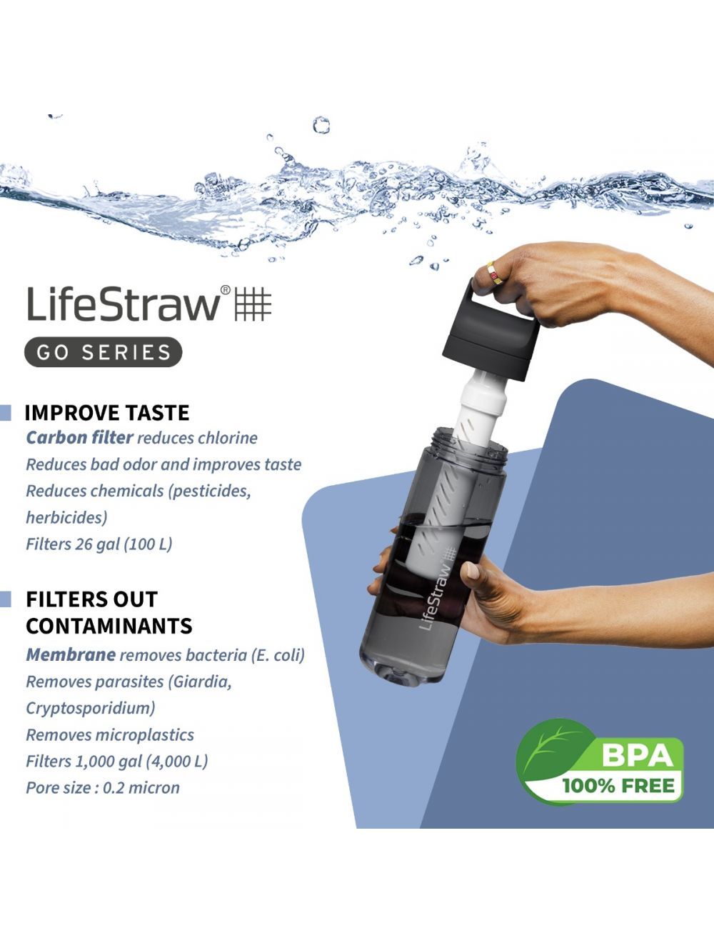 • Removes 99.999% of parasites, 99.999% of microplastics