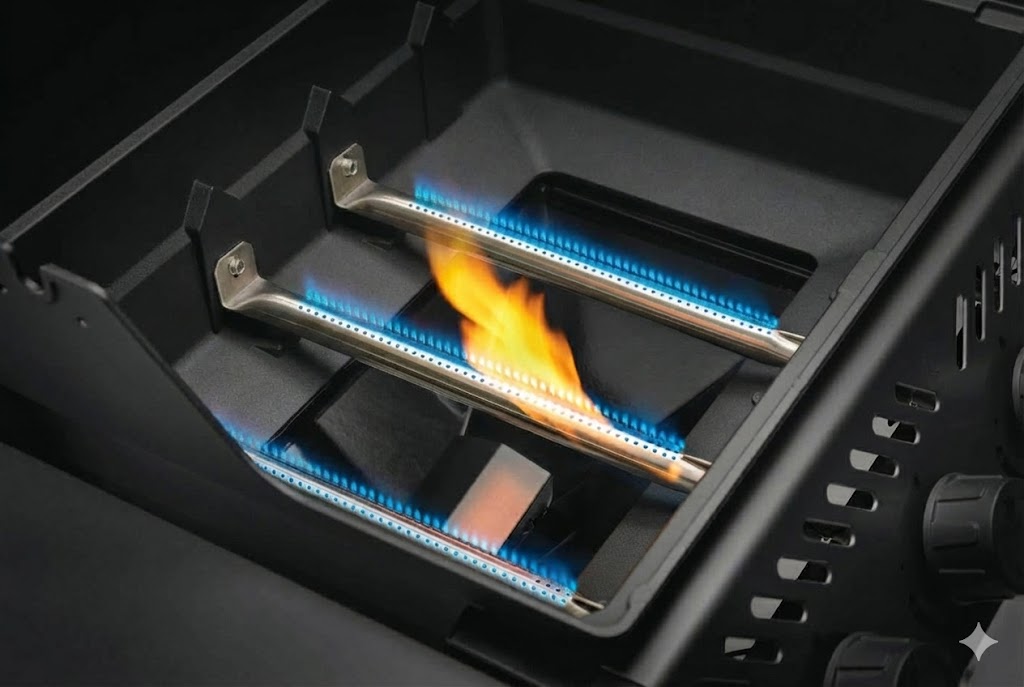 - This easy to use ignition system shoots a jet flame to light each of the main gas burners individually for quick start-ups